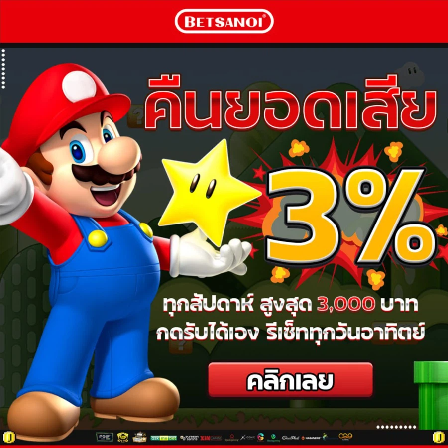 นอกจากโบนัสต้อนรับแล้ว BETSANOI ยังมีโปรโมชั่นคืนยอดเสียที่ช่วยบรรเทาความเสียหายจากการเดิมพันที่ไม่เป็นไปตามที่คาดหวัง โดยสมาชิกจะได้รับเงินคืนตามเปอร์เซ็นต์ของยอดเสียสะสม ซึ่งเป็นการช่วยให้นักพนันมีโอกาสกลับมาสร้างผลกำไรได้อีกครั้ง